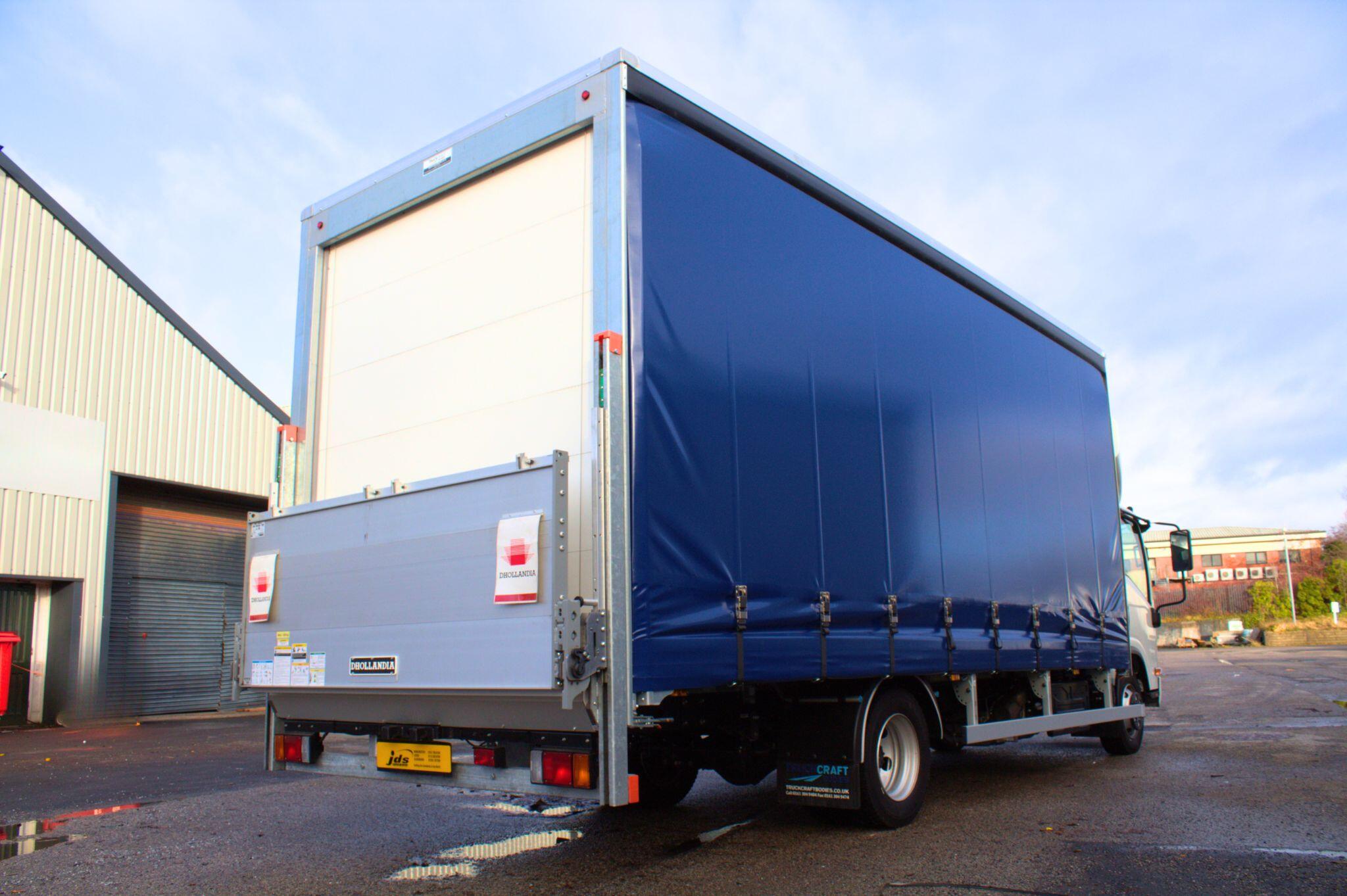 Curtainside Body with 1,000kg Tuckaway Tail lift and rear barn doors. Length: 6,096mm (20ft) Width: 2,440mm (8ft) Height: 2,440mm (8ft) Side Aperture: 2,236mm (7ft 6")