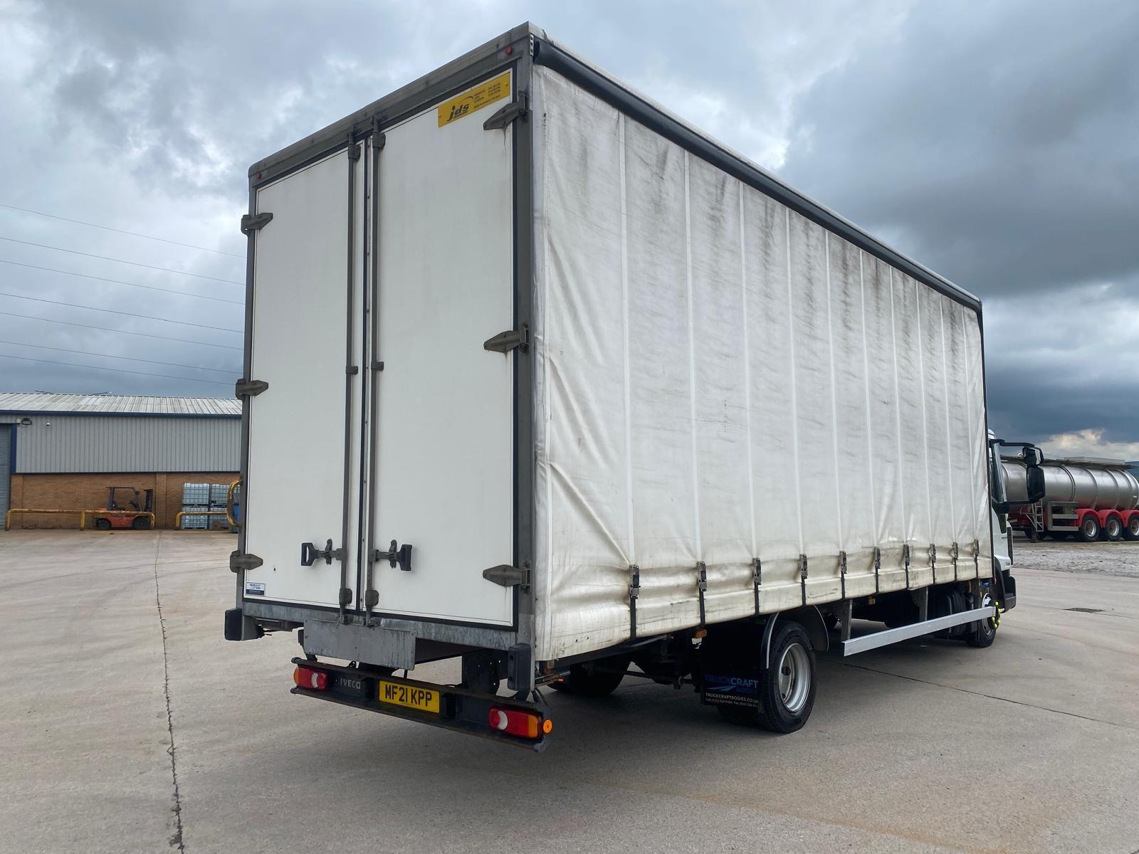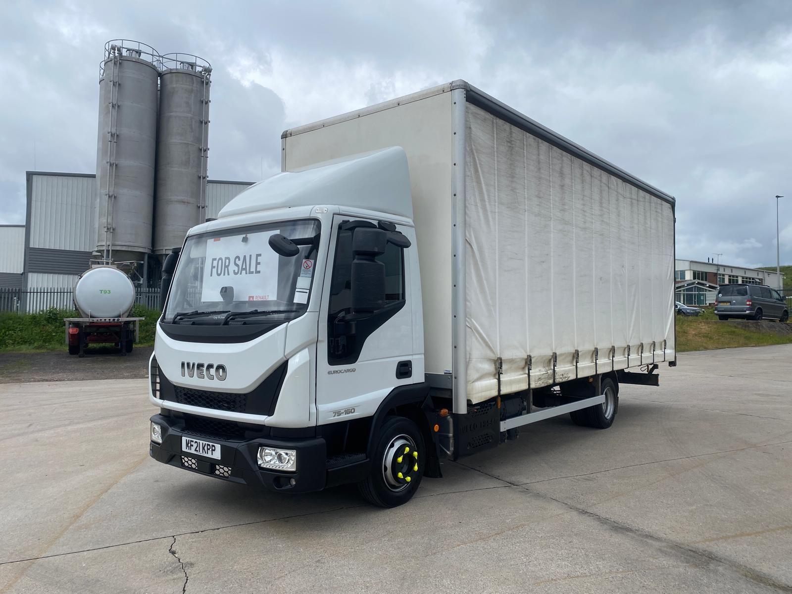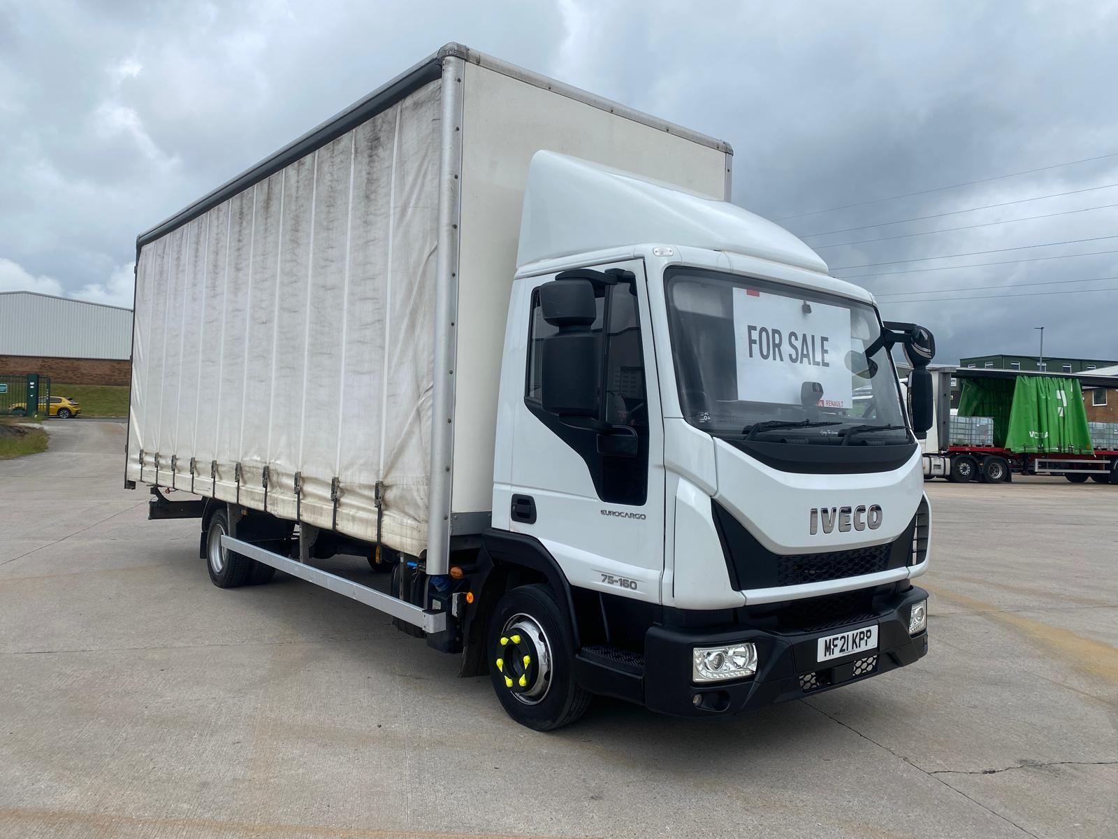2021 (21) Iveco Eurocargo 75E16S S-A Curtainsider. 7500 kgs GVW, One Owner Truck with 243,258 kms. 160 BHP Euro 6 Engine & Automatic Gearbox. Fitted with a 23' Curtainsider Body (22'6" x 8'7" Side Apertures) and Rear Barn Doors. Day Cab with Air Deflector, Dual Passenger Seat, Air Conditioning, Central Locking, Lane Departure Warning, Traction Control, Cruise Control, Electric Windows, Bluetooth CD/Radio. Very Tidy Truck with Larger than Average Body. Will be Sold with Workshop Inspection, 12-Months MOT & 6-Months Major-Component Warranty.