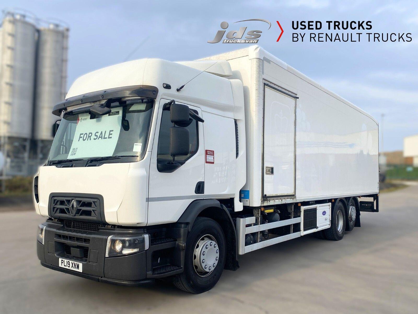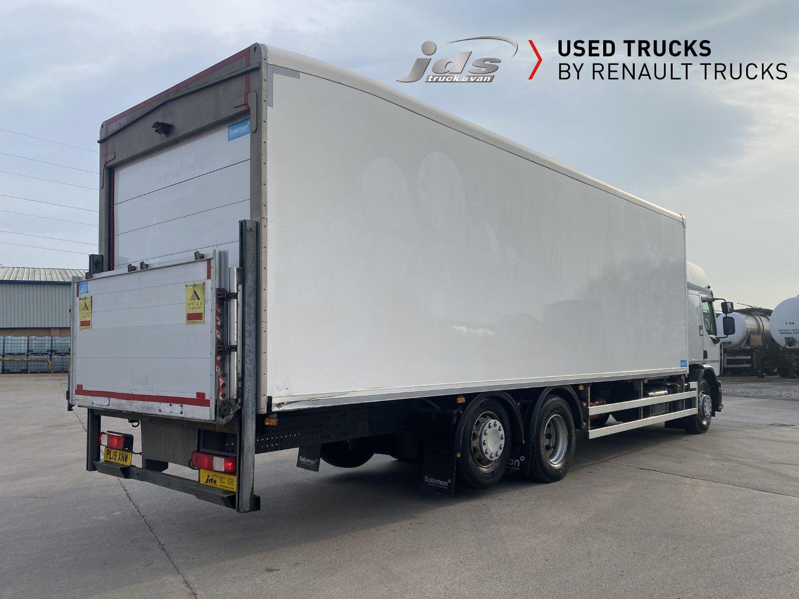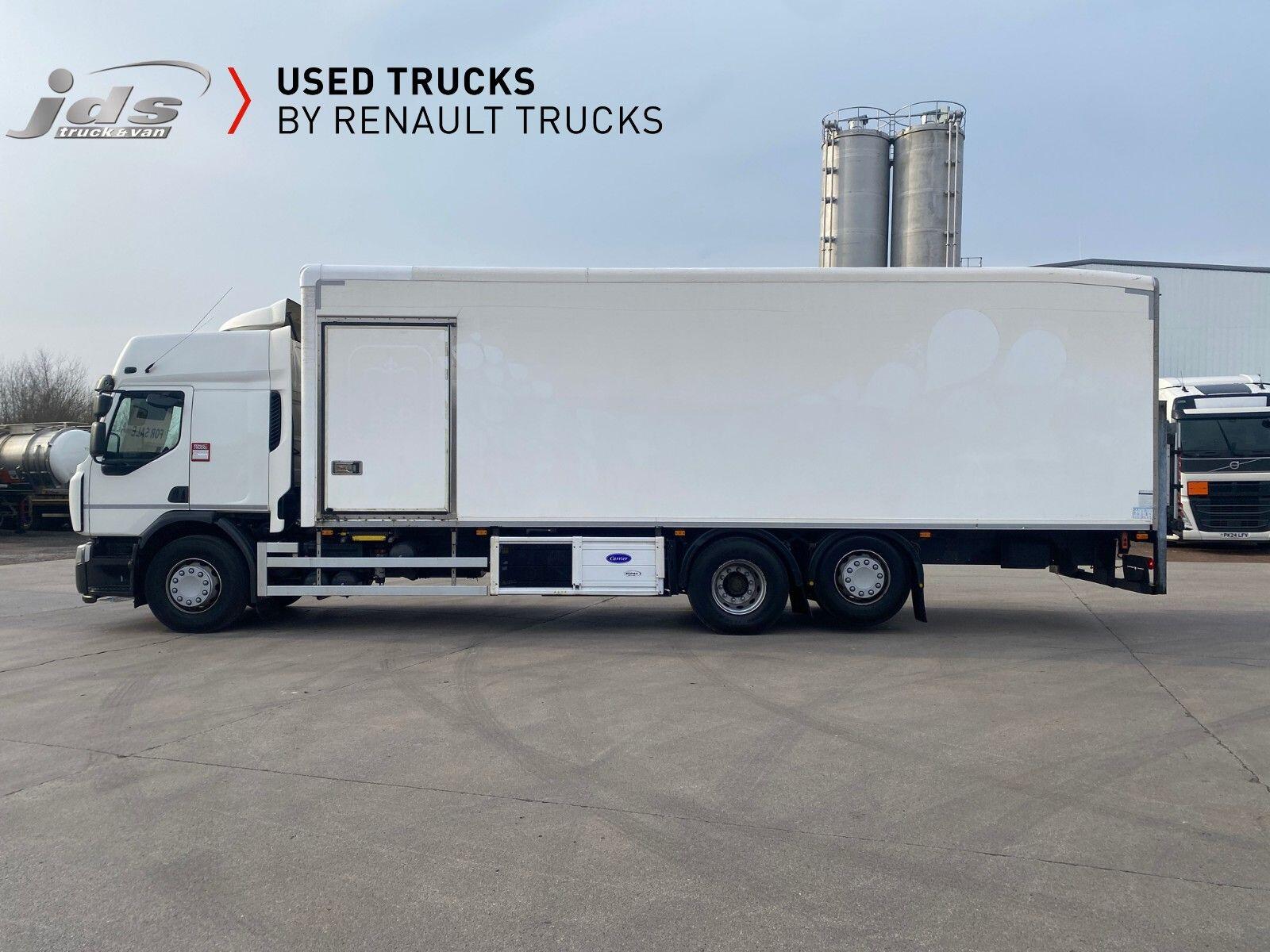 2019 (19) Renault D 26 Wide 6x2 Rear Lift Sleeper Cab Rigid. Fitted with a Solomon Refrigerated Body with Carrier Supra 1150 Multi-Temperature Underslung 'Fridge Unit, 1500 kgs D'Hollandia Taillift & Side Loading Door. Maintained on a Full Repair Maintenance Contract with FSH & just 449,904 kms. 320 BHP Euro 6 Engine, Auto Gearbox & Rear Air Suspension. High Roof Sleeper Cab with 4-Point Cab Air Suspension, Nightheater, Sunvisor & Air Deflector Kit. 8 Tonne Front Axle, Emergency Brake Assist & Emergency Brake Lights, Lane Departure Warning System, Electric Windows & Mirrors, Tinted & Laminated Windscreen & Windows, Upper Storage Cupboards, CB Pre-Equipment, Electrically Operated Roof Hatch, Air-Suspended Driver's Seat, Adjustable Passenger Seat, Cruise Control with Optiroll, 12/24v Sockets, Remote Central Locking, Running Lights, Reverse Buzzer with Night Switch, FMS Gateway Fleet Management Interface, Telematics Provision. Reverse Camera.