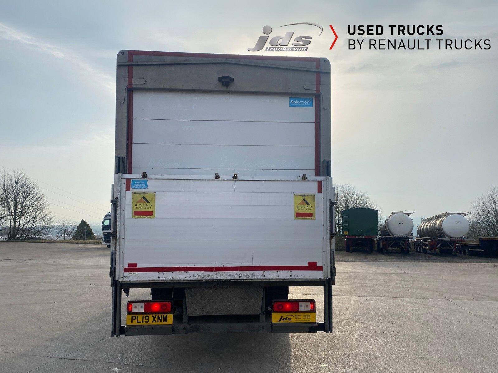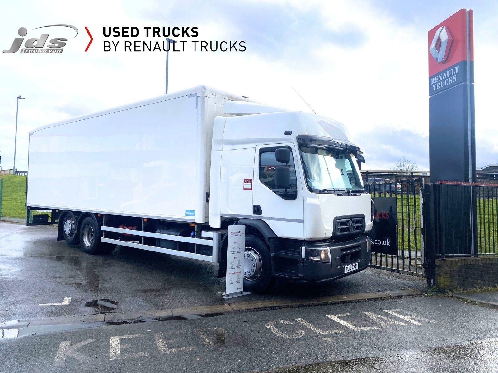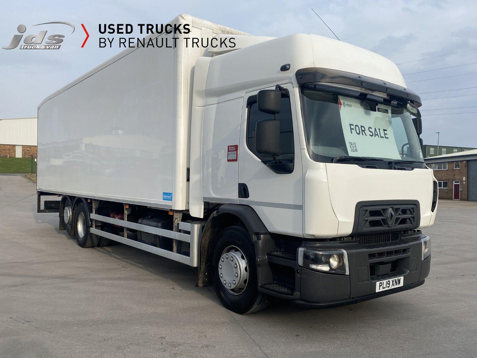 2019 (19) Renault D 26 Wide 6x2 Rear Lift Sleeper Cab Rigid. Fitted with a Solomon Refrigerated Body with Carrier Supra 1150 Multi-Temperature Underslung 'Fridge Unit, 1500 kgs D'Hollandia Taillift & Side Loading Door. Maintained on a Full Repair Maintenance Contract with FSH & just 449,904 kms. 320 BHP Euro 6 Engine, Auto Gearbox & Rear Air Suspension. High Roof Sleeper Cab with 4-Point Cab Air Suspension, Nightheater, Sunvisor & Air Deflector Kit. 8 Tonne Front Axle, Emergency Brake Assist & Emergency Brake Lights, Lane Departure Warning System, Electric Windows & Mirrors, Tinted & Laminated Windscreen & Windows, Upper Storage Cupboards, CB Pre-Equipment, Electrically Operated Roof Hatch, Air-Suspended Driver's Seat, Adjustable Passenger Seat, Cruise Control with Optiroll, 12/24v Sockets, Remote Central Locking, Running Lights, Reverse Buzzer with Night Switch, FMS Gateway Fleet Management Interface, Telematics Provision. Reverse Camera.