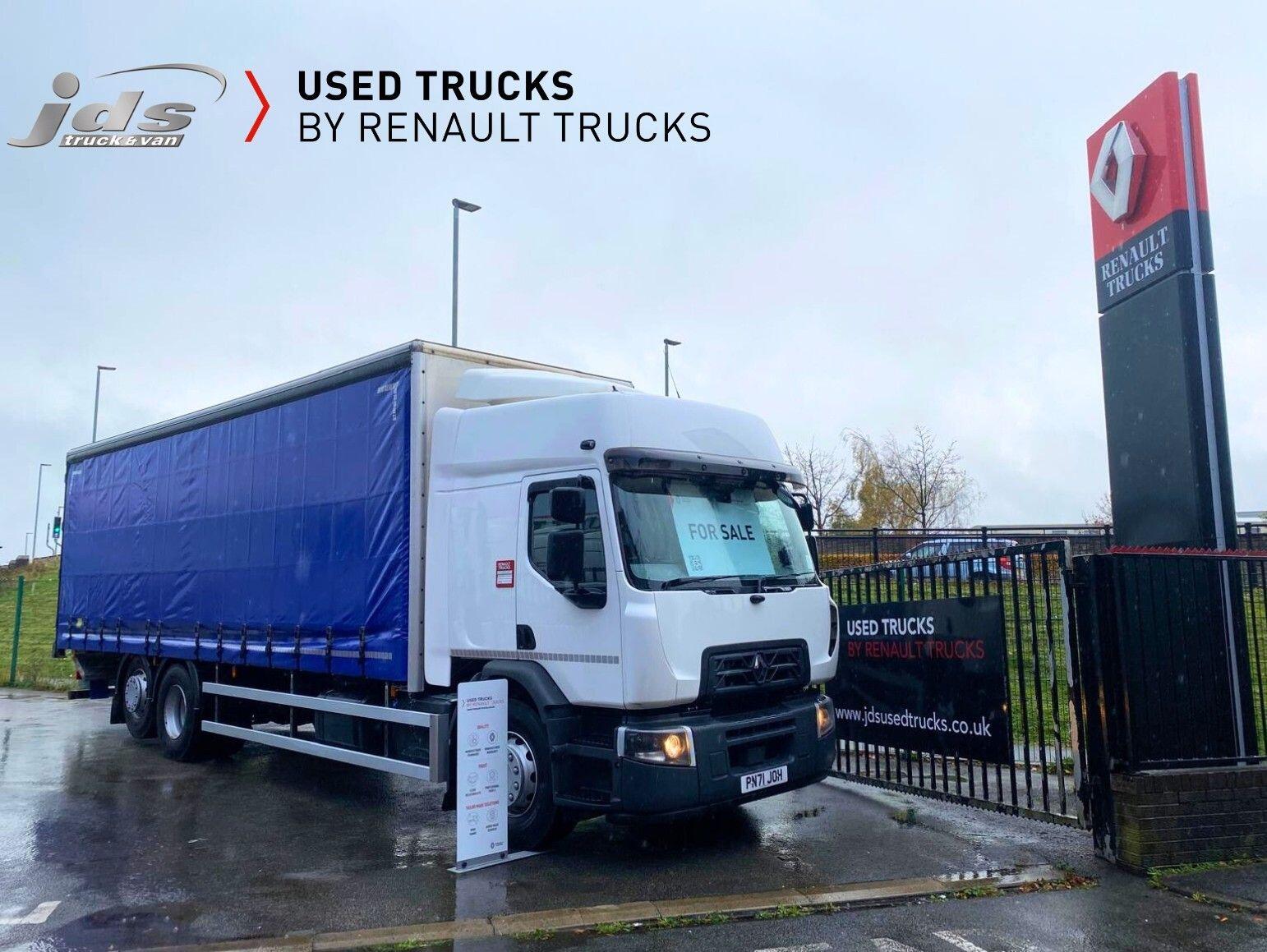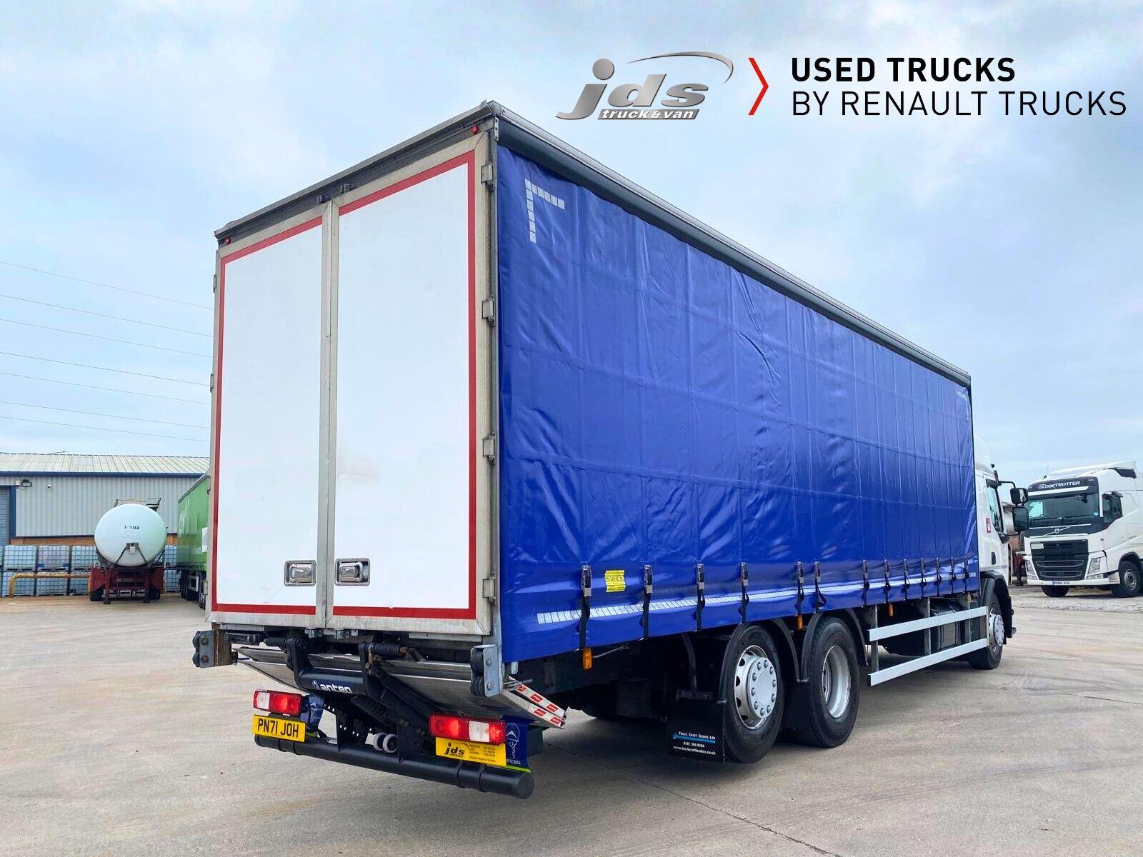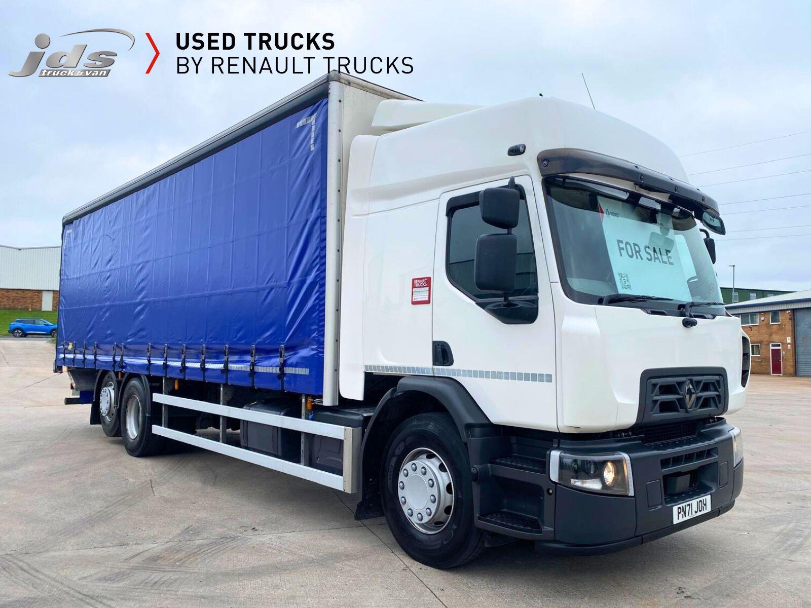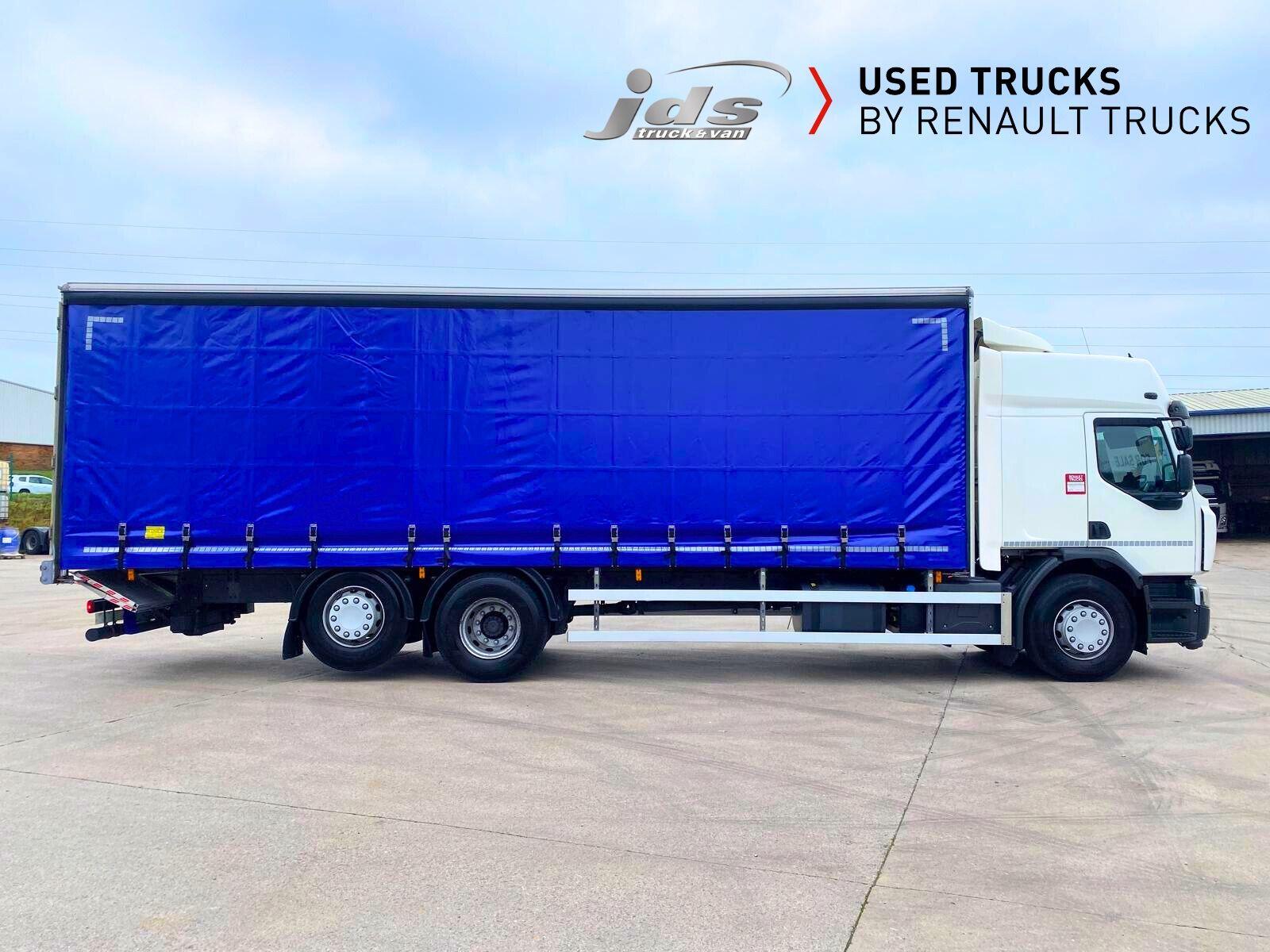 2021 (71) Renault D 26 Wide 6x2 Rear Lift Sleeper Cab Rigid. Fitted with a Curtainsider Body with Rear Barn Doors & 1500 kgs Anteo Tuckaway Taillift. Maintained on a Full Repair Maintenance Contract with FSH & just 299,379 kms! 320 BHP Euro 6 Engine, Auto Gearbox & Rear Air Suspension. High Roof Sleeper Cab with 4-Point Cab Air Suspension, Nightheater, Sunvisor & Air Deflector Kit. 8 Tonne Front Axle, Emergency Brake Assist & Emergency Brake Lights, Lane Departure Warning System, Electric Windows & Mirrors, Tinted & Laminated Windscreen & Windows, Upper Storage Cupboards, CB Pre-Equipment, Electrically Operated Roof Hatch, Air-Suspended Driver's Seat, Adjustable Passenger Seat, Cruise Control with Optiroll, 12/24v Sockets, Remote Central Locking, Running Lights, Reverse Buzzer with Night Switch, FMS Gateway Fleet Management Interface & Telematics Provision. London PSS Camera System Fitted