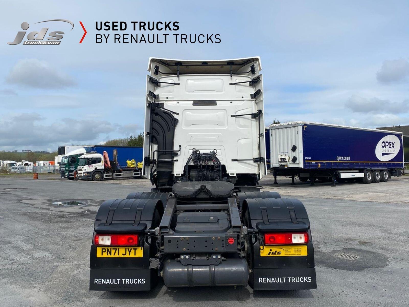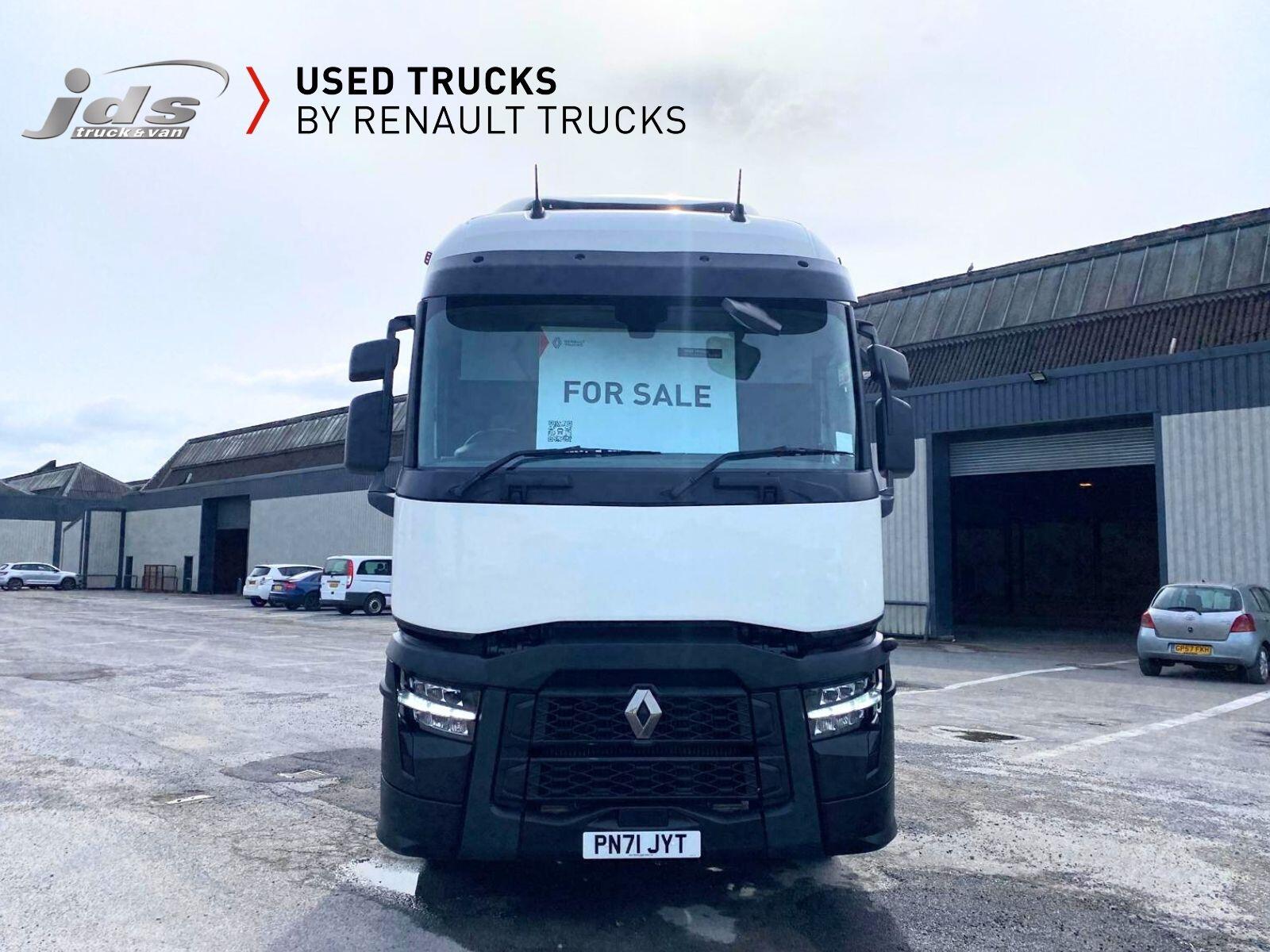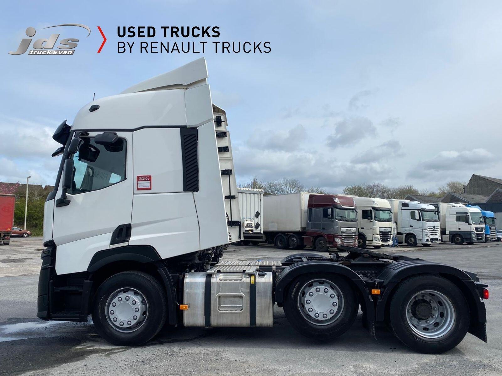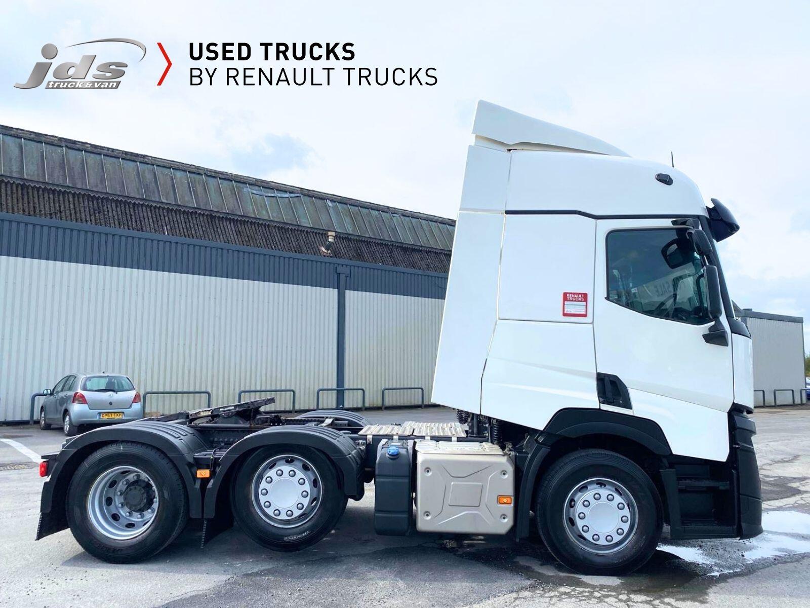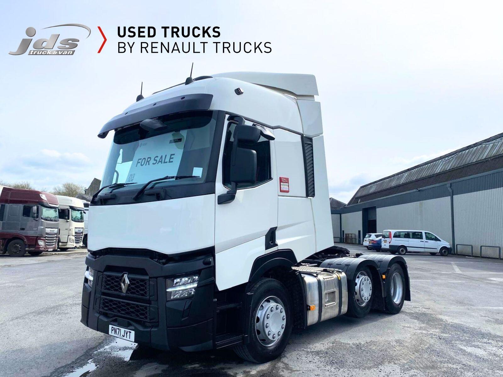 2022 (71) Renault Trucks T480.26 TML EVOLUTION 6x2 Midlift with 13 Litre Engine. Sold New & Maintained by JDS Trucks - with just 350,430 KMS & Full Service History. High Roof Sleeper Cab, 13 Litre 480 BHP Euro 6 Engine & Automatic Gearbox, Engine Brake, 7.5 Tonne Front Axle, ECO Cruise Control with Optiroll, Emergency Brake Assist with Emergency Brake Lights, Hill Start Asist, Electronic Air Conditioning, Full Air Deflector Kit, Heated Remote Control Mirrors, Bluetooth MP3 CD Radio with Fingertip Controls, Electric Roof Hatch, Electric Sunblind, Air-Suspended Driver's Seat with 2 Armrests, Passenger Seat with 2 Armrests, Ultimate Leather Steering Wheel, Drawer under Bunk with 24L Fridge, Microwave, 12/24V Sockets, Sliding 5th Wheel, LED Day Running Lights, Front Fog Lights, Lane Departure Warning System, Reverse Warning Buzzer, FMS Gateway Fleet Management Interface