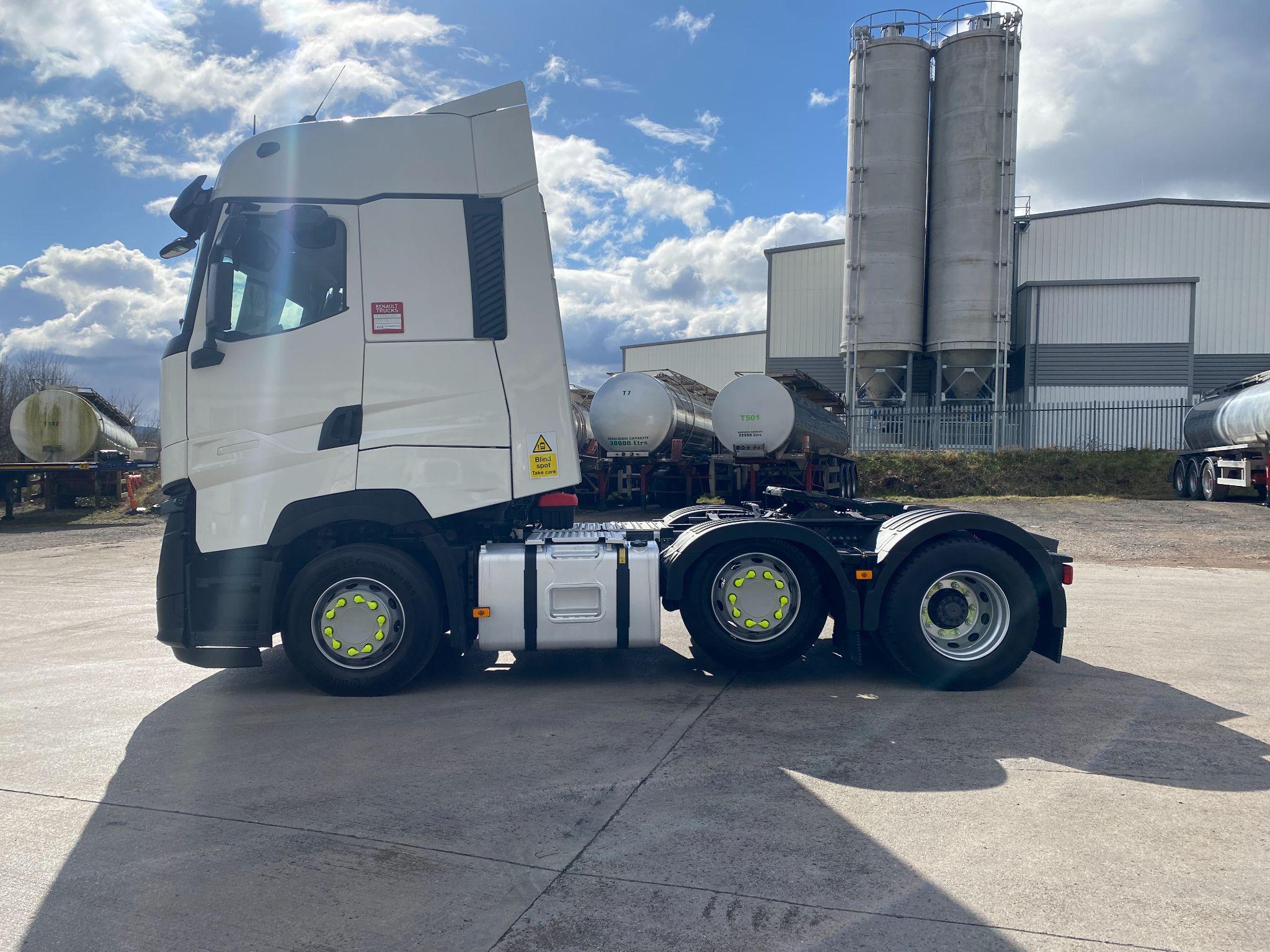 2022 (71) Renault T HIGH 480.26 TML 6x2 Midlift EVOLUTION Model Tractor Unit. Maintained on a Renault Full Repair & Maintenance Contract with just 277,473 kms! T High Flat-Floor Sleeper Cab, 13 Litre 480 BHP Euro 6 Engine & Automatic Gearbox, Engine Brake, RoadPad+ with HGV Tom Tom Navigation System, 8-Tonne Front Axle, 4-Point Cab Air Suspension, Sunvisor, ECO Cruise Control with Optiroll & Map Based Gear Shifting Strategy, Lane Departure Warning System, Emergency Brake Assist, Electric Cab Tilt, Electronic Air Conditioning, Full Air Deflector Kit, Leather Seat Trim, Electric Windscreen Sunblind, Heated Remote Control Mirrors, Luxury Heated Ventilated Driver's Seat with 2 Armrests, Air Suspended Passenger Seat with 2 Armrests, Ultimate Upper Bunk, Ultimate Leather Steering Wheel, Additional Cab Storage Lockers, Microwave, Drawer under Bunk with 40 Litre Fridge, LED Cab Lighting, Remote Control in Bunk Area for Cab Controls, DAB+ Radio USB Port Jack Socket & Bluetooth, One-Touch Electric Windows, 12/24V Sockets, Sliding 5th Wheel with Extended Rear Platform, LED Rear Lights, LED Day Running Lights & LED Work Light, Front Fog Lights, Automatic Lights & Wipers, Reverse Warning Buzzer, Heavy Duty Sediment & Prefilter, FMS Gateway Fleet Management Interface & Telematics Pre-Equipment. Fantastic Truck with Great Specification - Must be Seen!