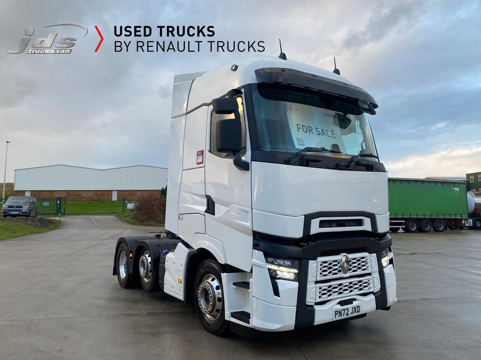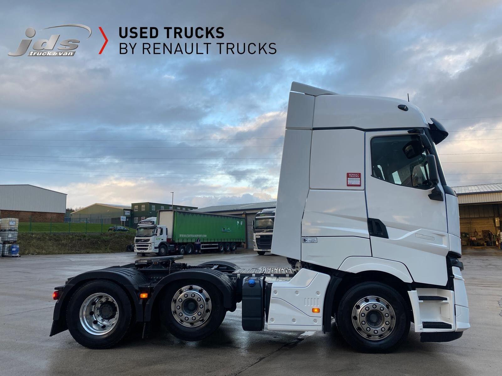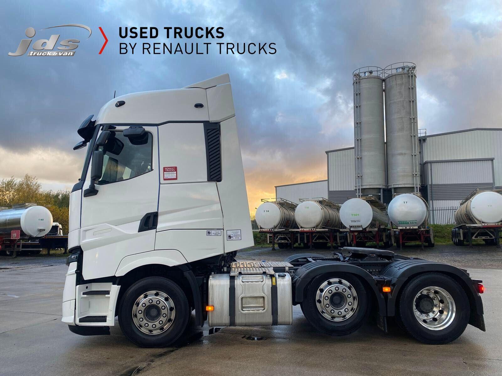 2022 (72) Renault Trucks T HIGH 520.26 TML Evolution 6x2 Midlift Tractor Unit. Sold New & Maintained on a Renault Full Repair & Maintenance Contract by JDS Trucks with just 351,761 kms. Full Service History. T HIGH Flat-Floor Sleeper Cab, 13 Litre 520 BHP Euro 6 Engine & Automatic Gearbox, Engine Brake, 4-Point Cab Air Suspension, Alcoa Dura-Bright Alloy Wheels, Electric Cab Tilt, Sunvisor, Adaptive Cruise Control (ACC) linked to Advanced Emergency Braking System (AEBS) with ECO Optiroll, Lane Departure Warning System, Emergency Brake Assist, Electronically Regulated Comfort Air Conditioning, Full Air Deflector Kit, Leather Seats, Electric Windscreen Sunblind, Heated Remote Control Mirrors, Luxury Heated Ventilated Driver's Seat with 2 Armrests, Passenger Seat with 2 Armrests, Ultimate Upper Bunk, Ultimate Leather Steering Wheel, Drawer under Bunk with 40 Litre Fridge, Microwave, LED Cab Lighting, Remote Control in Bunk Area for Cab Controls, ROADPAD+ System with HGV Sat Nav, FM/DAB+ Radio with Bluetooth, USB Port & Jack Socket, 4 Loudspeakers & 2 Tweeters. One-Touch Electric Windows, 12/24V Sockets, Sliding 5th Wheel with Extended Rear Platform, Aluminium Suzie A-Frame, LED Rear Lights, LED Day Running Lights & LED Work Light, Front Fog Lights, Additional Cornering Lights, Automatic Lights & Wipers, Integrated Headlamp Washer, Reverse Warning Buzzer, Metallic Door Sills, Heavy Duty Sediment & Prefilter, Telematics Pre-Equipment, FMS Gateway Fleet Management Interface. London PSS Camera System fitted. CHOICE OF 4.