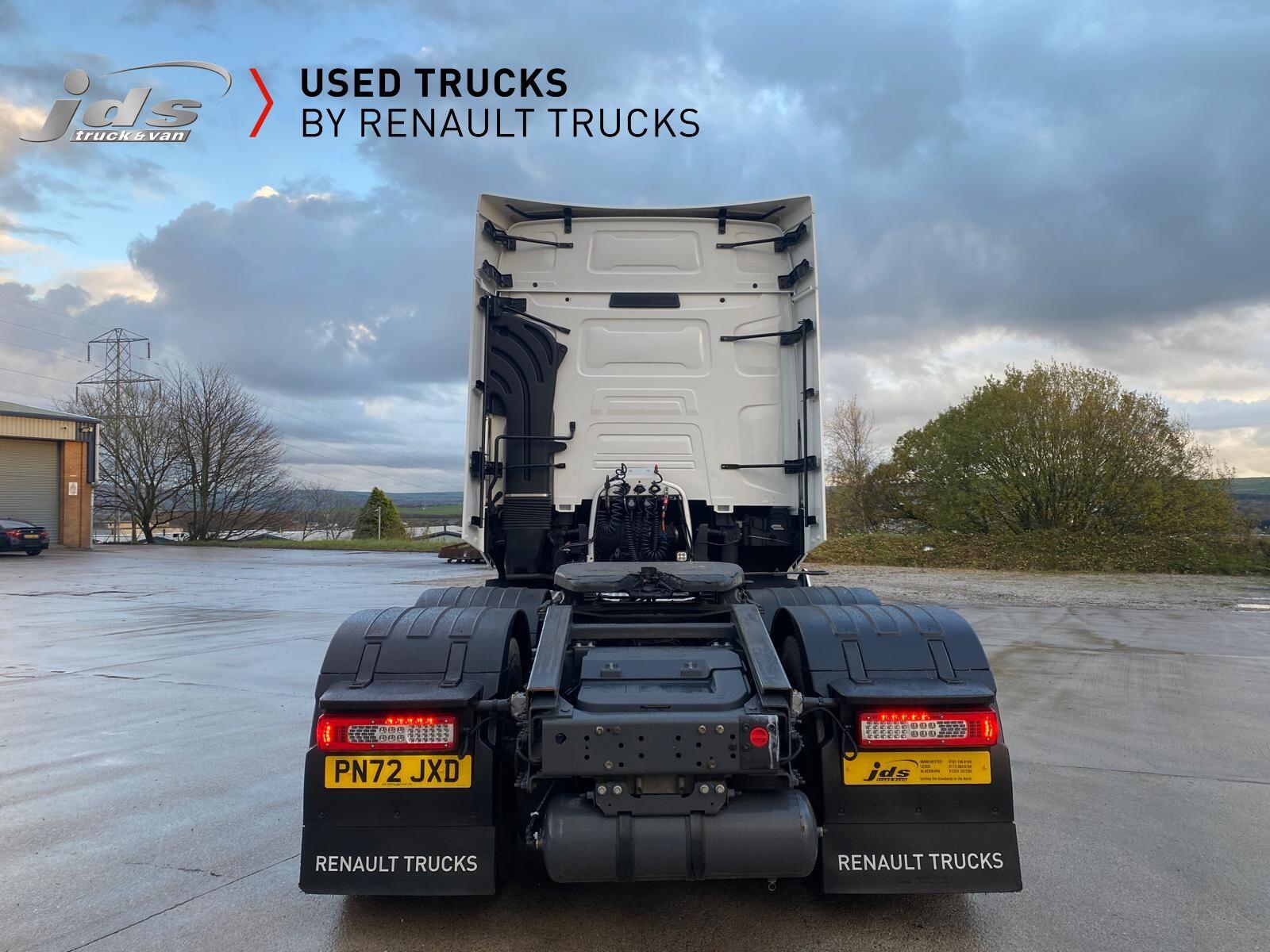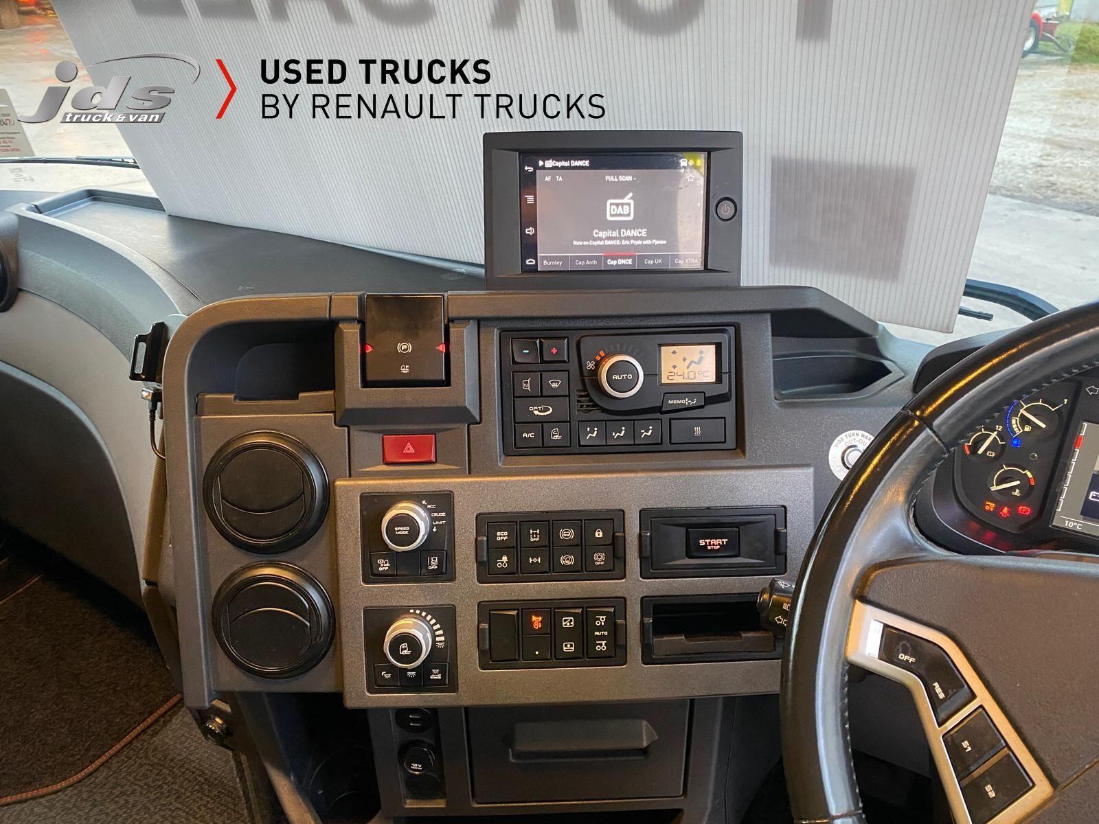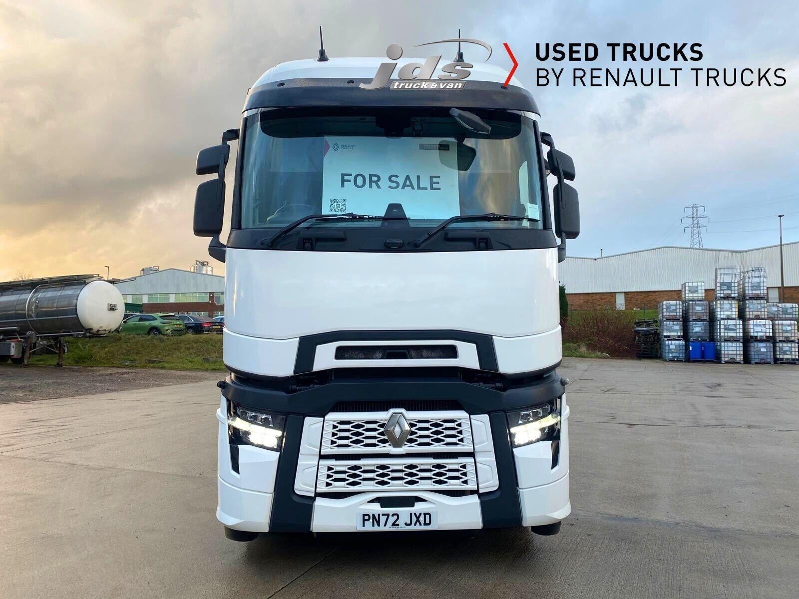 2022 (72) Renault Trucks T HIGH 520.26 TML Evolution 6x2 Midlift Tractor Unit. Sold New & Maintained on a Renault Full Repair & Maintenance Contract by JDS Trucks with just 351,761 kms. Full Service History. T HIGH Flat-Floor Sleeper Cab, 13 Litre 520 BHP Euro 6 Engine & Automatic Gearbox, Engine Brake, 4-Point Cab Air Suspension, Alcoa Dura-Bright Alloy Wheels, Electric Cab Tilt, Sunvisor, Adaptive Cruise Control (ACC) linked to Advanced Emergency Braking System (AEBS) with ECO Optiroll, Lane Departure Warning System, Emergency Brake Assist, Electronically Regulated Comfort Air Conditioning, Full Air Deflector Kit, Leather Seats, Electric Windscreen Sunblind, Heated Remote Control Mirrors, Luxury Heated Ventilated Driver's Seat with 2 Armrests, Passenger Seat with 2 Armrests, Ultimate Upper Bunk, Ultimate Leather Steering Wheel, Drawer under Bunk with 40 Litre Fridge, Microwave, LED Cab Lighting, Remote Control in Bunk Area for Cab Controls, ROADPAD+ System with HGV Sat Nav, FM/DAB+ Radio with Bluetooth, USB Port & Jack Socket, 4 Loudspeakers & 2 Tweeters. One-Touch Electric Windows, 12/24V Sockets, Sliding 5th Wheel with Extended Rear Platform, Aluminium Suzie A-Frame, LED Rear Lights, LED Day Running Lights & LED Work Light, Front Fog Lights, Additional Cornering Lights, Automatic Lights & Wipers, Integrated Headlamp Washer, Reverse Warning Buzzer, Metallic Door Sills, Heavy Duty Sediment & Prefilter, Telematics Pre-Equipment, FMS Gateway Fleet Management Interface. London PSS Camera System fitted. CHOICE OF 4.