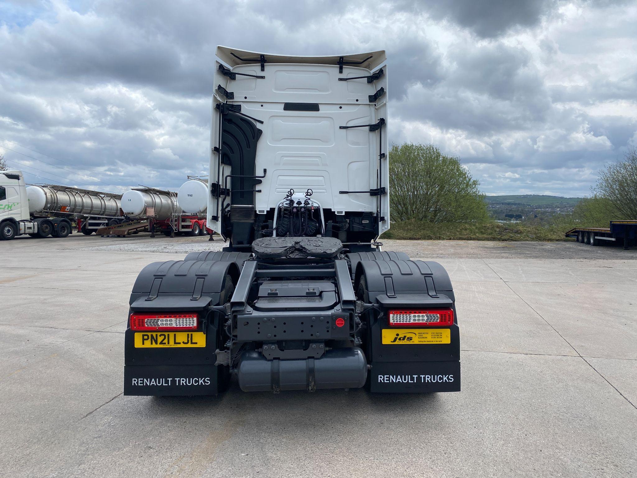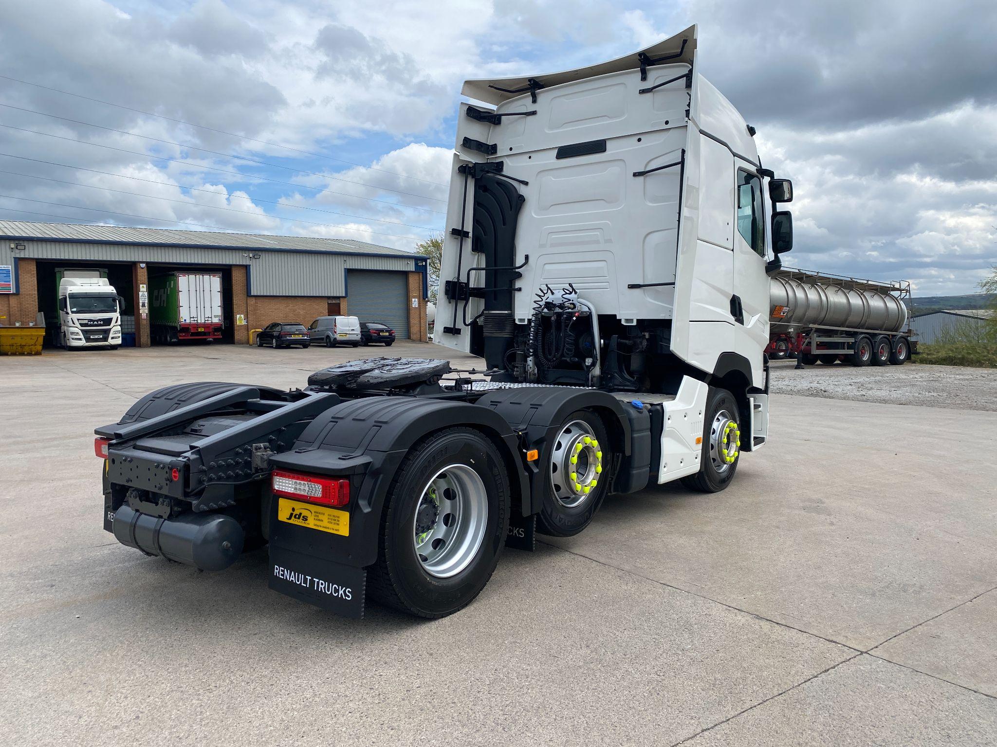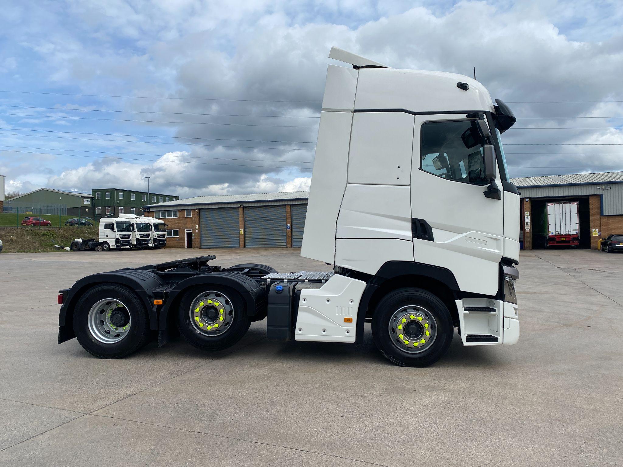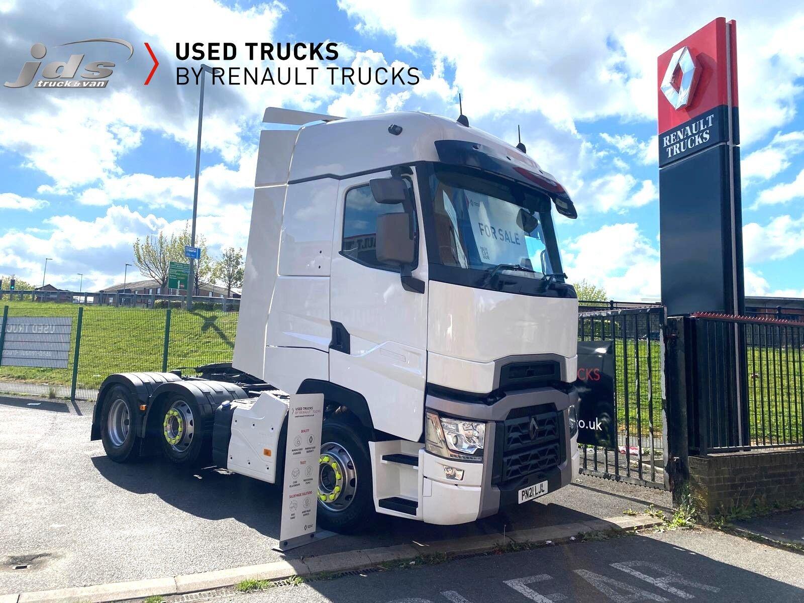 2021 (21) Renault T HIGH 520.26 TML 6x2 Midlift Tractor Unit. Maintained on a Renault Full Repair & Maintenance Contract with just 437,330 kms. T HIGH Flat-Floor Sleeper Cab, 13 Litre 520 BHP Euro 6 Engine & Automatic Gearbox, Engine Brake, 4-Point Cab Air Suspension, Electric Cab Tilt, Sunvisor, ECO Cruise Control with Optiroll, Lane Departure Warning System, Emergency Brake Assist, Aluminium Suzie A-Frame, Electronically Regulated Comfort Air Conditioning, Full Air Deflector Kit, Leather Seats, Electric Windscreen Sunblind, Heated Remote Control Mirrors, Luxury Heated Ventilated Driver's Seat with 2 Armrests, Ultimate Upper Bunk, Ultimate Leather Steering Wheel, Drawer under Bunk with 40 Litre Fridge, LED Cab Lighting, Remote Control in Bunk Area for Cab Controls, ROADPAD+ System with HGV Sat Nav, , FM/DAB+ Radio with Bluetooth, USB Port & Jack Socket, 4 Loudspeakers & 2 Tweeters. One-Touch Electric Windows, 12/24V Sockets, Sliding 5th Wheel with Extended Rear Platform, LED Rear Lights, LED Day Running Lights & LED Work Light, Front Fog Lights, Additional Cornering Lights, Automatic Lights & Wipers, Reverse Warning Buzzer, Metallic Door Sills, Heavy Duty Sediment & Prefilter, Telematics Pre-Equipment, FMS Gateway Fleet Management Interface